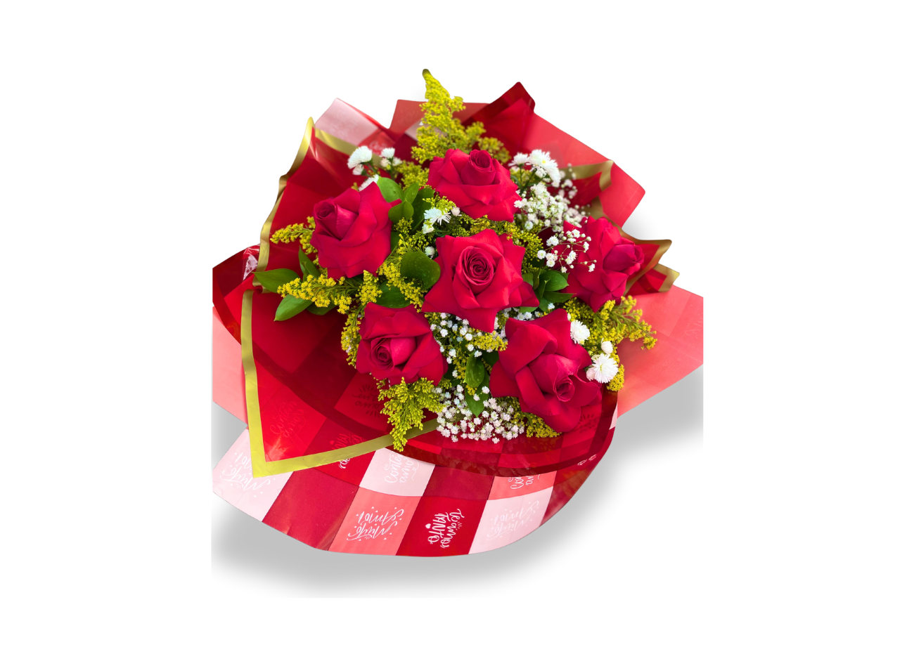 Composto por 6 rosas importadas, flores naturais complementares e folhagens verdes, este buquê transmite amor, carinho e admiração em um visual clássico e inesquecível.